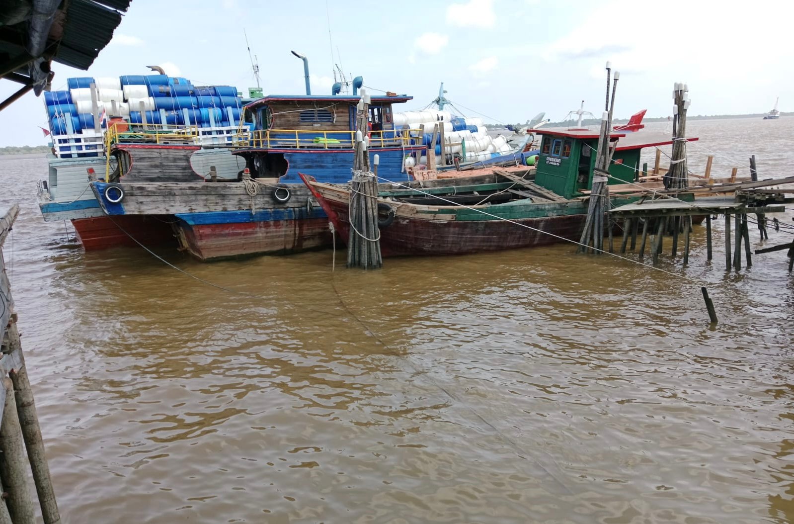 Berdasarkan pantauan di lapangan, kapal tersebut terlihat sandar dan melakukan bongkar muat dalam kondisi penuh muatan. Barang yang dibongkar di antaranya drum plastik kosong yang kuat diduga merupakan barang impor.