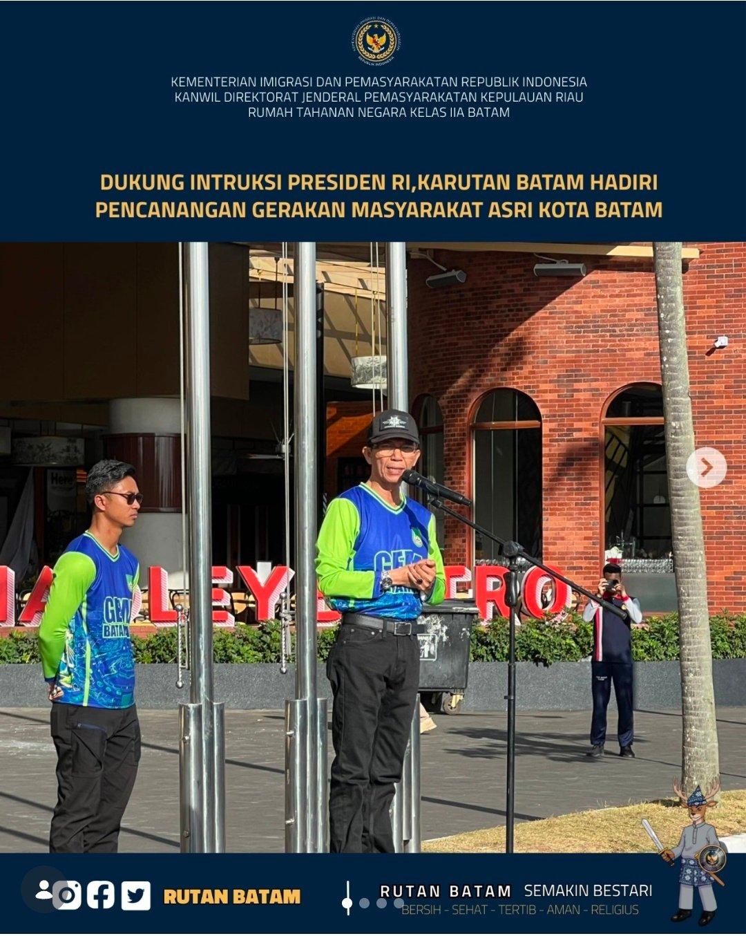Mitrapol.id – Kepala Rumah Tahanan Negara (Rutan) Kelas IIA Batam turut menghadiri kegiatan Pencanangan Gerakan Masyarakat Asri, Aman, Sehat, Resik, dan Indah (ASRI) yang diselenggarakan oleh Pemerintah Kota Batam, Rabu (11/2/2026). Kegiatan ini berlangsung di K-Square Mall Batam Kota dan dihadiri oleh unsur Forum Koordinasi Pimpinan Daerah (Forkopimda) Kota Batam serta berbagai instansi vertikal.