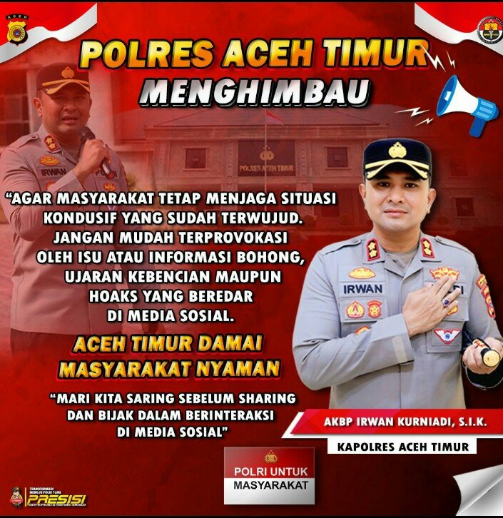 “Oleh karena itu kami minta masyarakat untuk tetap tenang dan beraktivitas seperti biasa.” Terang Kapolres Aceh Timur AKBP Irwan Kurniadi, S.I.K.