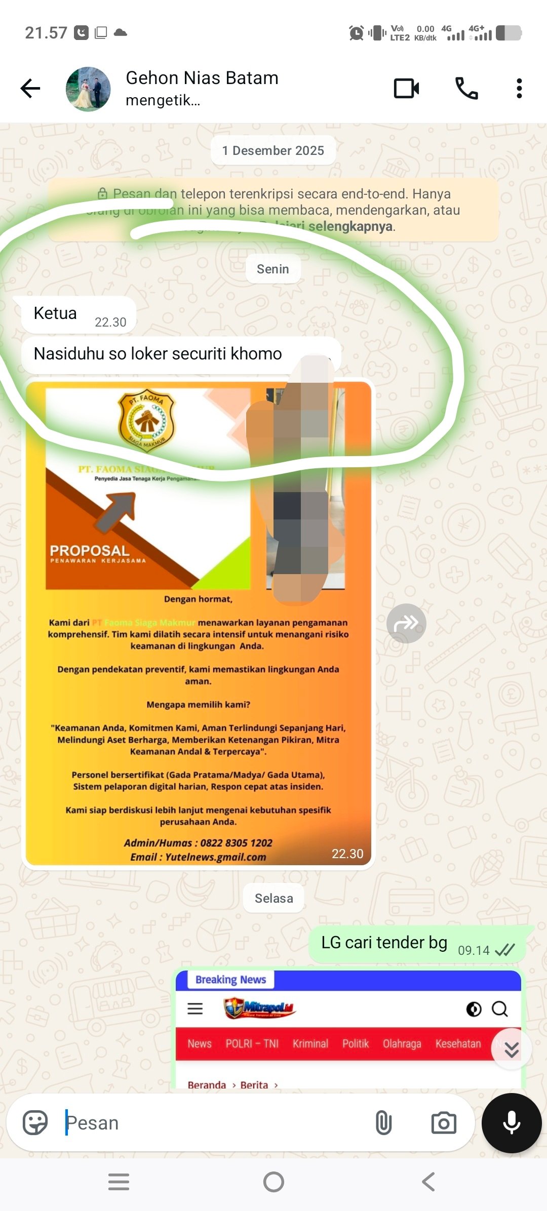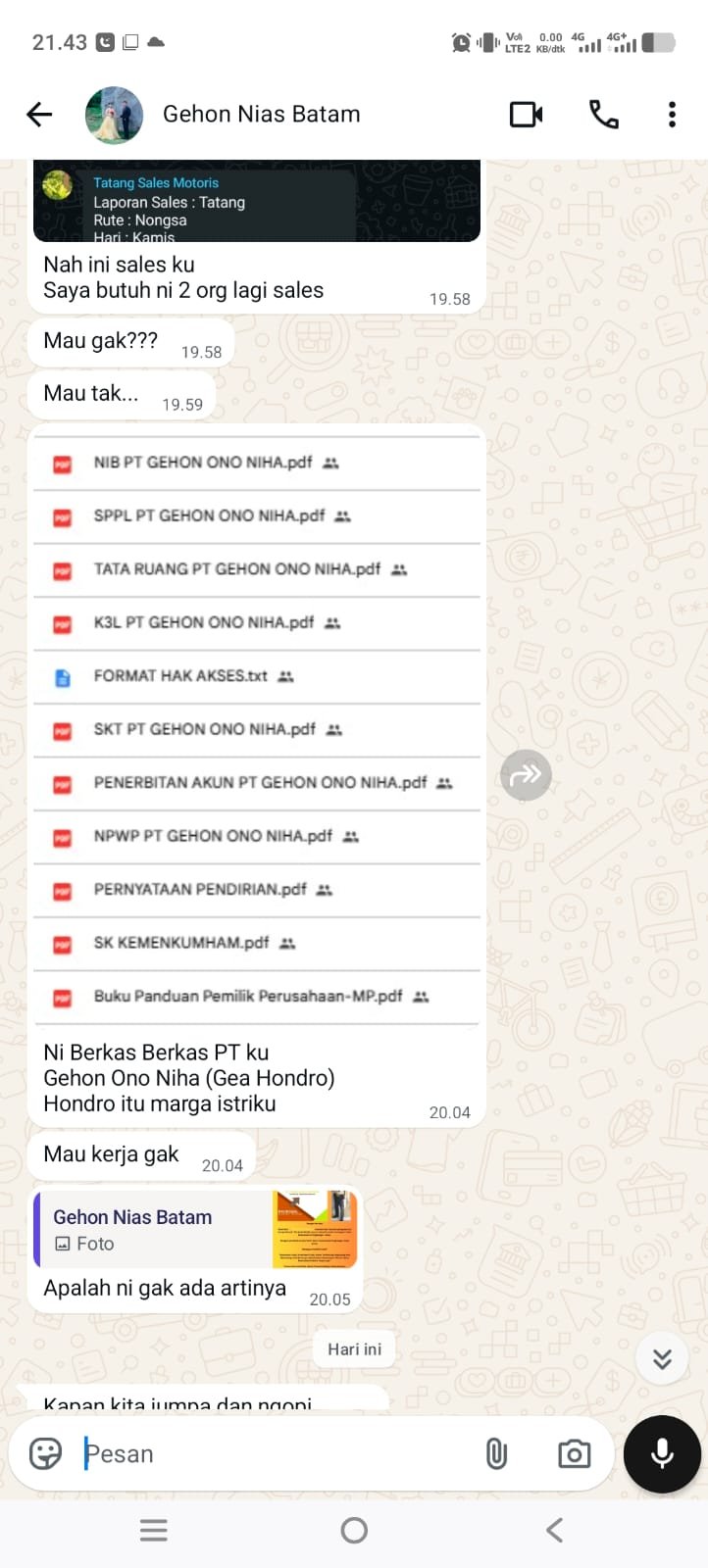 Screenshot Chat MGea melalui WhatsApp