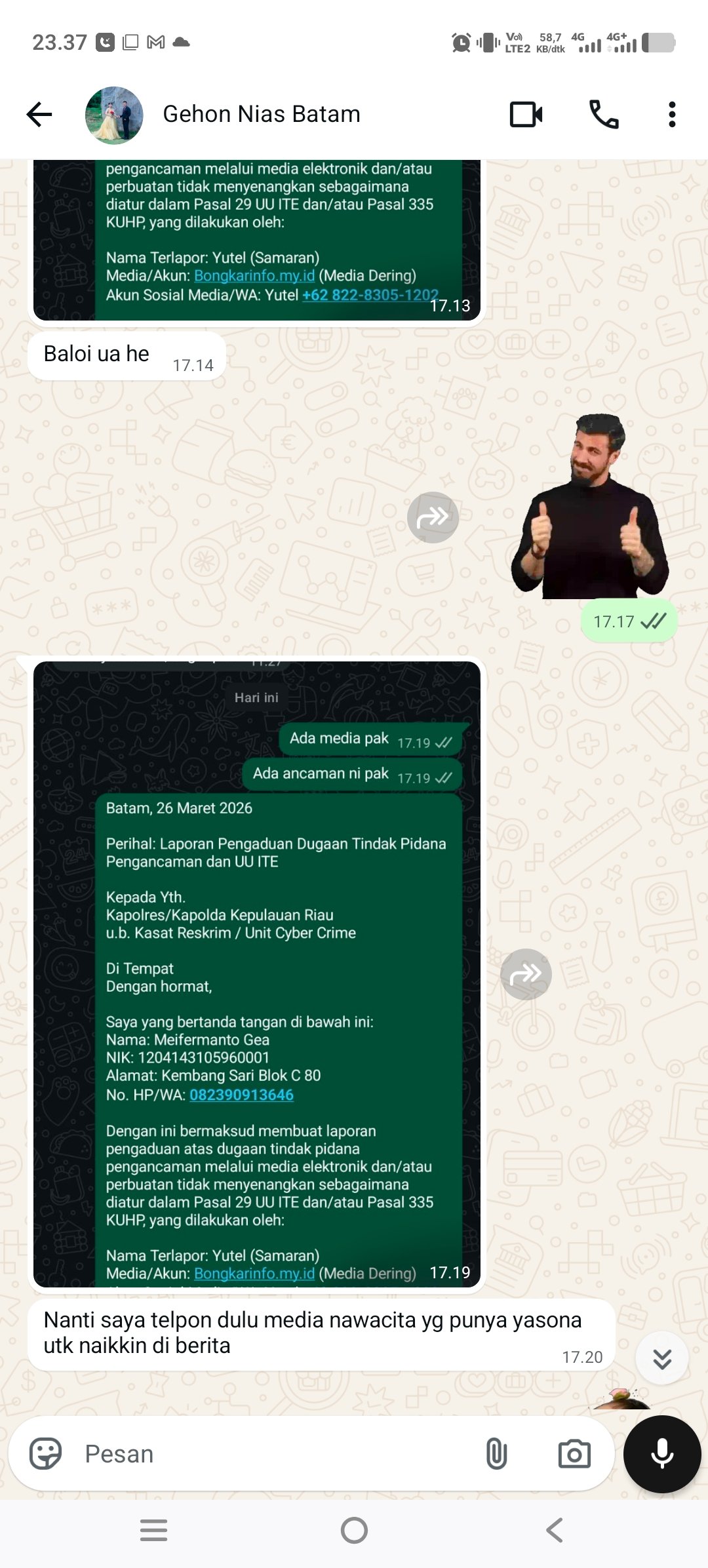 Mitrapol.id / Beberapa Poin Klarifikasi M.Gea terkait Grub VNB (Viral Nias Batam) dan Lainnya :