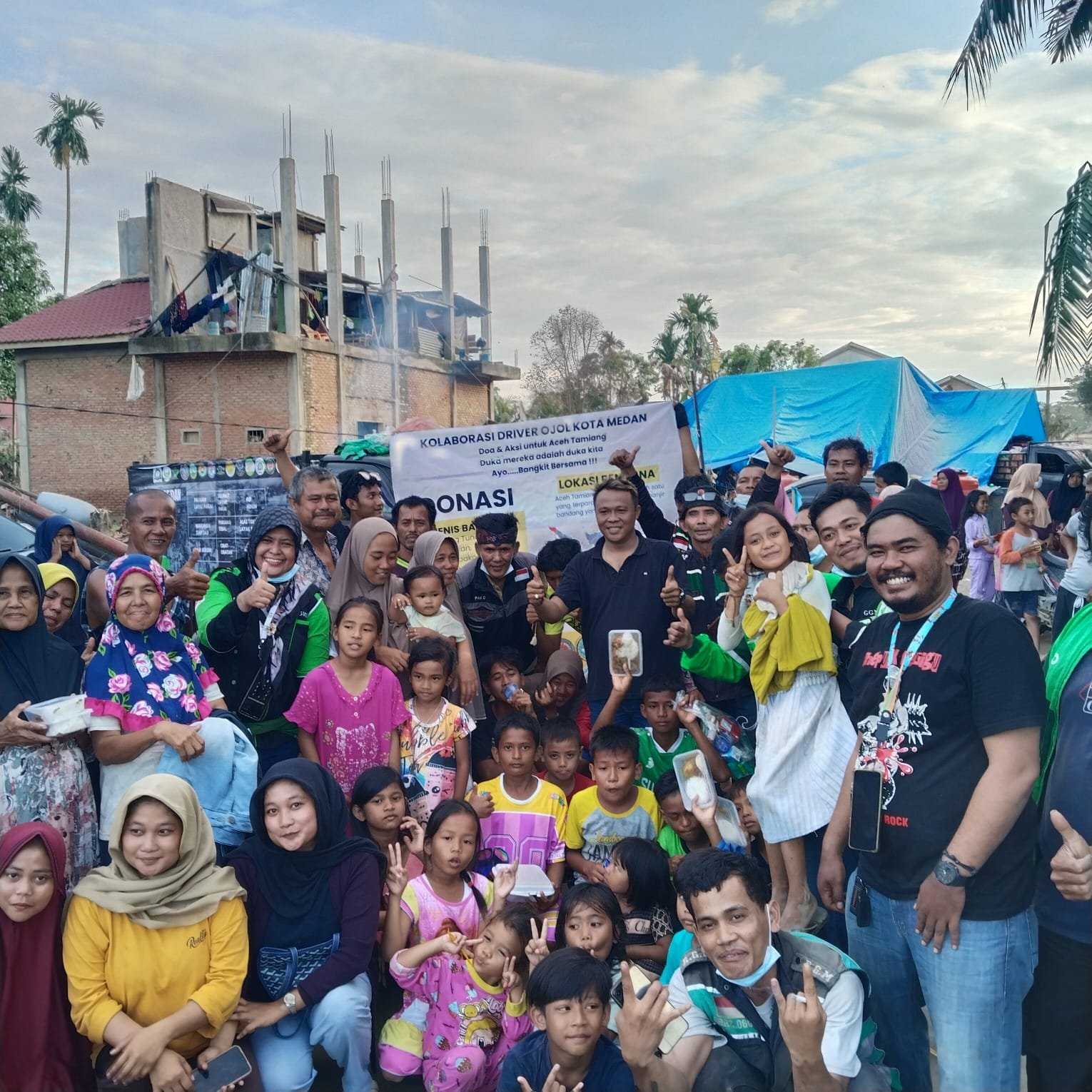 Aceh tamiang – Dalam bentuk kepedulian terhadap sesama, kolaborasi ojol medan langsung terjun kelokasi yang beralamat kota lintang bawah, dusun al-ikhsan kuala simpang aceh Tamiang