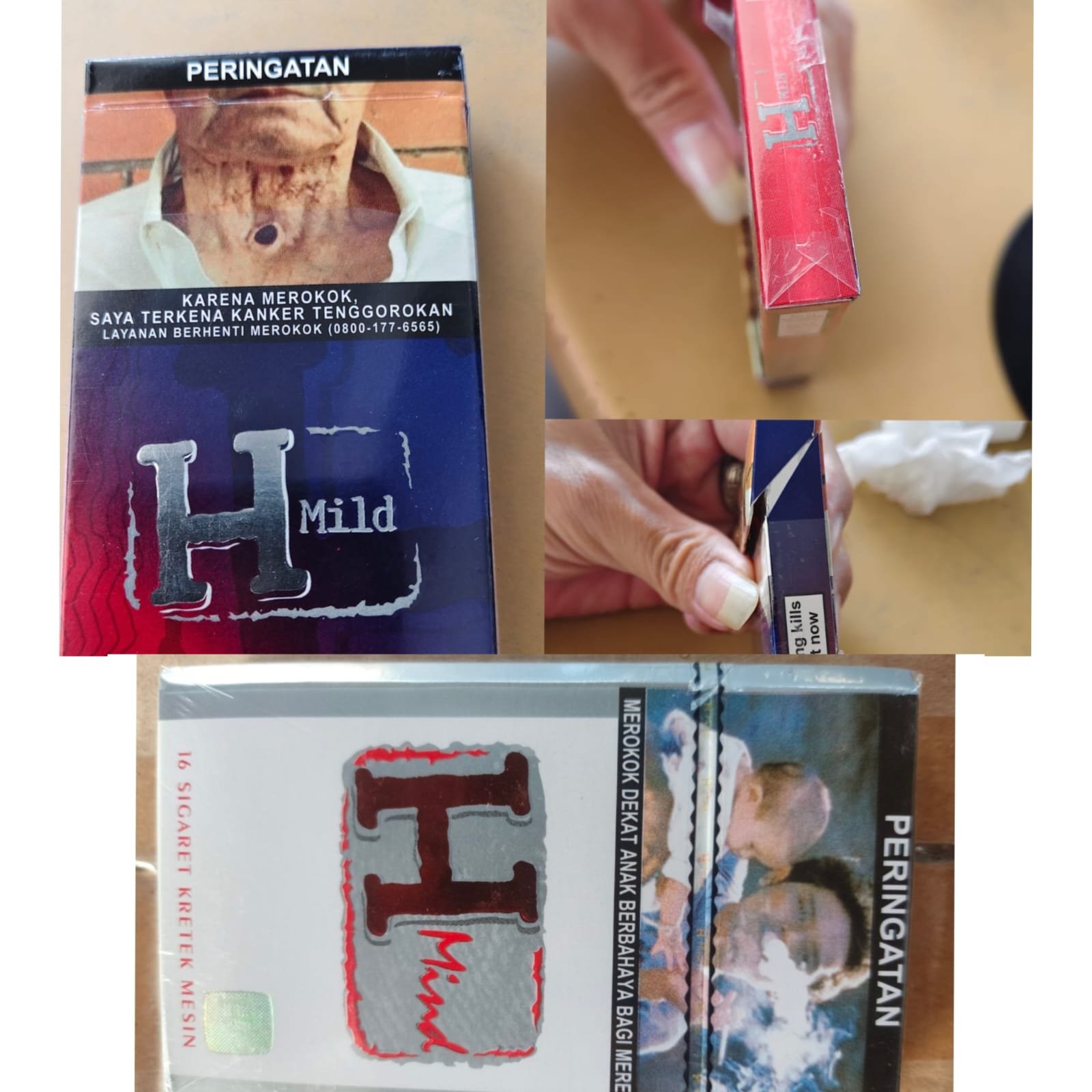 Rokok ilegal “H Mild” dan ” Hmind” dengan kemasan warna merah dan campur ping maupun hijau dengan varian rasa yang sedikit berbeda untuk di nikmati oleh konsumen.