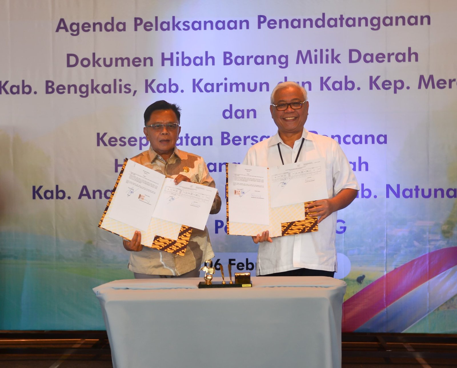 Kepastian itu didapat setelah Bupati Kepulauan Meranti, AKBP (Purn) H. Asmar menyerahkan Naskah Perjanjian Hibah Daerah (NPHD) kepada Direktur Human Capital PT Perum Bulog, Sudarsono Hardjosoekarto, sekaligus penandatanganan Berita Acara Serah Terima (BAST) lahan, dan Nota Kesepahaman kerja sama beras, Jumat (6/2/2026) di Kota Batam.