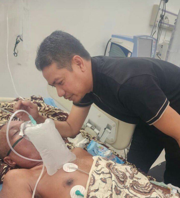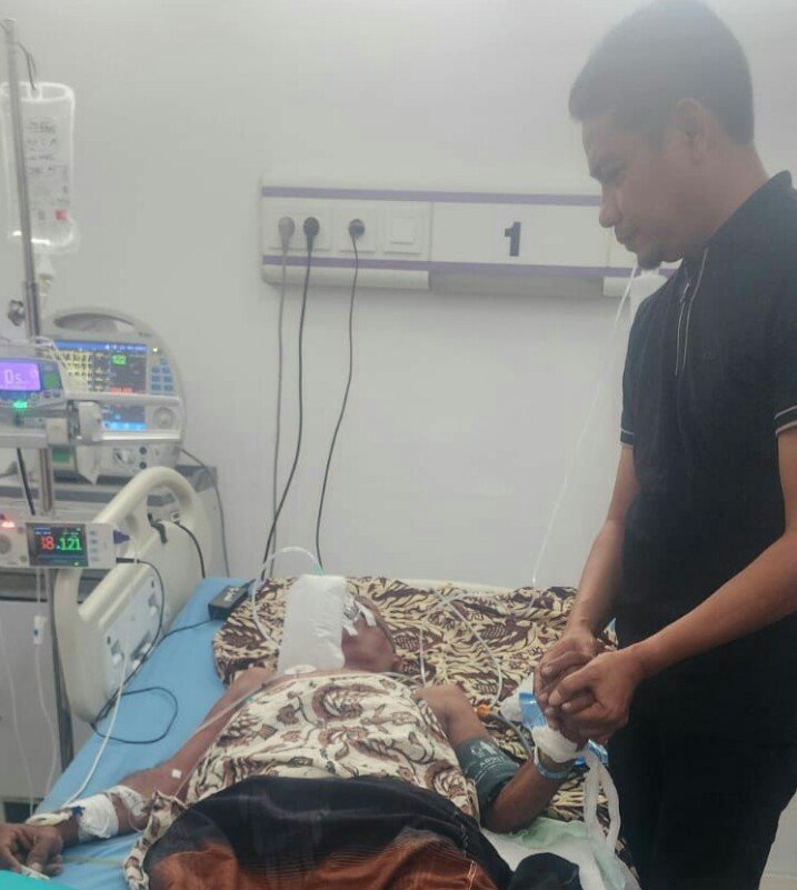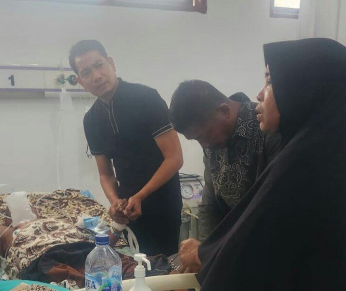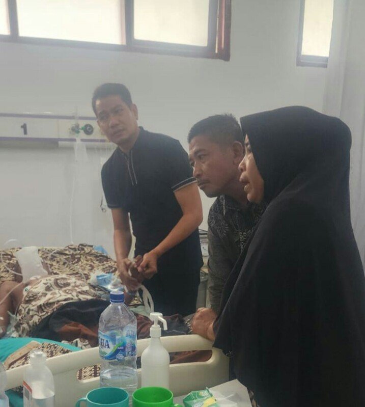 Kedatangan Wakil Bupati T. Zainal Abidin sontak membuat suasana ruang perawatan menjadi haru. Dengan wajah tenang dan penuh perhatian, beliau menggenggam tangan Saed yang tampak lemah.